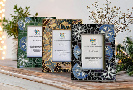 Give meaningful gifts that make a difference. From mosaic coasters and frames (including custom options) to votives, note cards, and notebooks, each Piece by Piece creation is handcrafted by artists rebuilding their lives. Your purchase supports free training programs and provides income for individuals overcoming homelessness and economic insecurity.