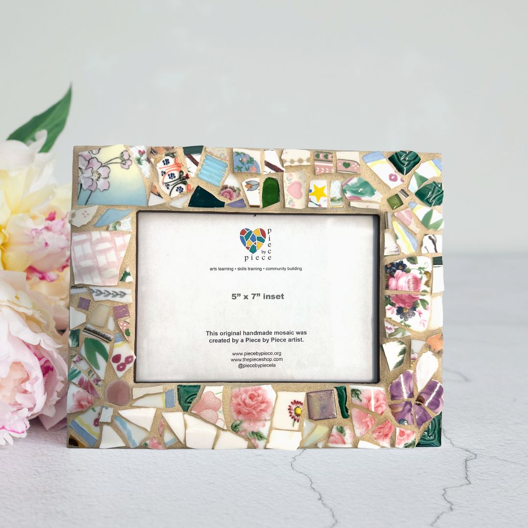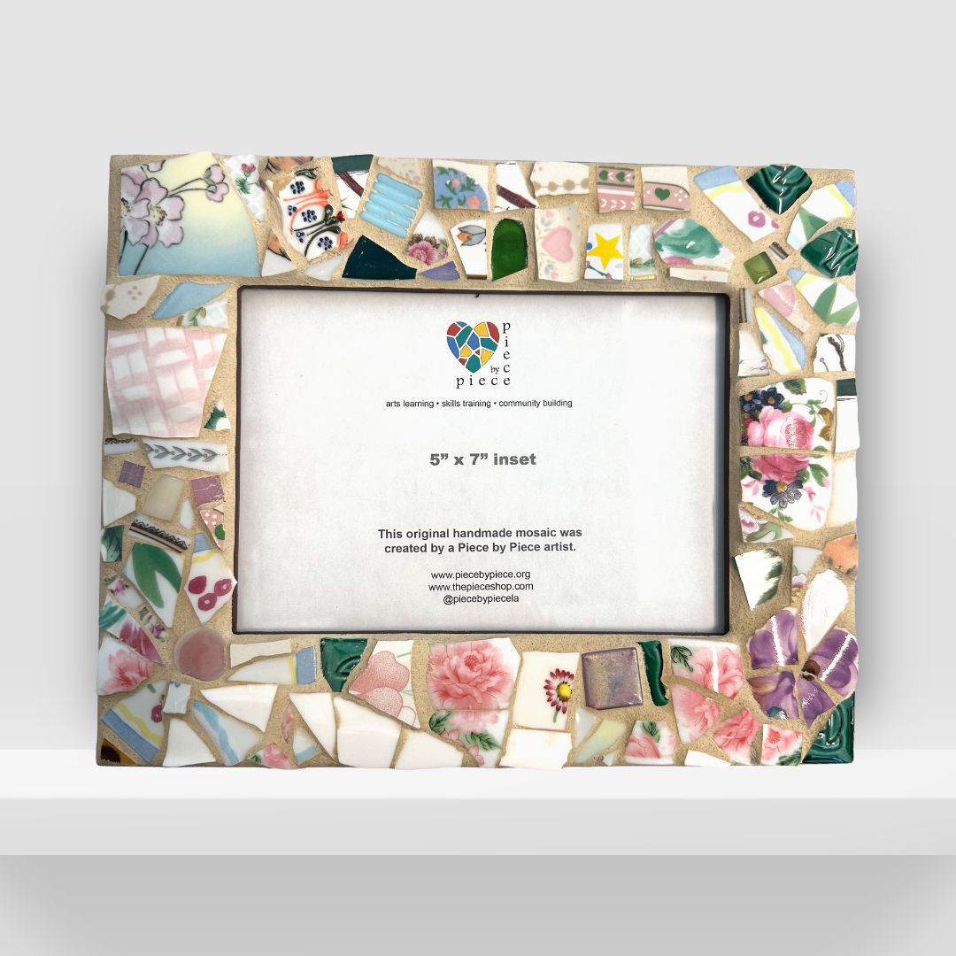 Piece by Piece provides no-cost mosaic art workshops to low-income residents of South Los Angeles, Skid Row, and surrounding areas. These classes provide folks who need it with the healing power of art by teaching them how to make mosaics, and in turn, the trade enables them to earn income through their unique creations.
