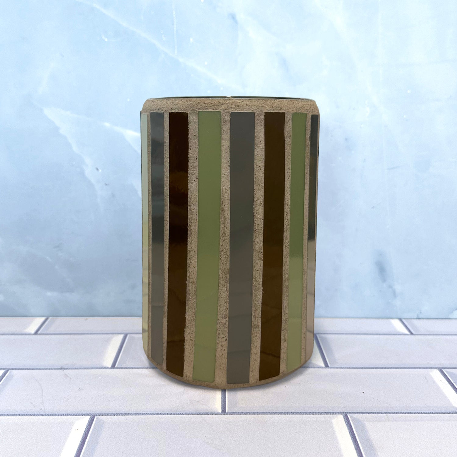 These 6-inch votive glass candle holders are charming as a table centerpiece, living room accents or any type of home decor. Each modern votive holder is individually handcrafted by a Los Angeles-based certified mosaic artist. Because every votive is handmade, individual pieces may vary slightly in color and design. By choosing a Piece by Piece votive, you're illuminating more than your space; you're lighting the way for community wellness and social change.