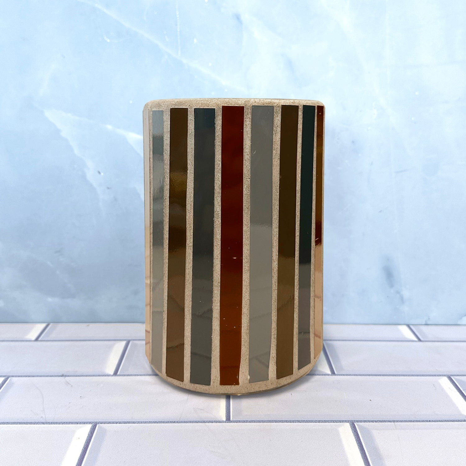 These 6-inch votive glass candle holders are charming as a table centerpiece, living room accents or any type of home decor. Each modern votive holder is individually handcrafted by a Los Angeles-based certified mosaic artist. Because every votive is handmade, individual pieces may vary slightly in color and design. By choosing a Piece by Piece votive, you're illuminating more than your space; you're lighting the way for community wellness and social change.